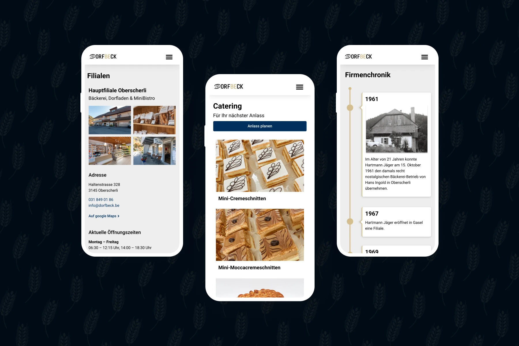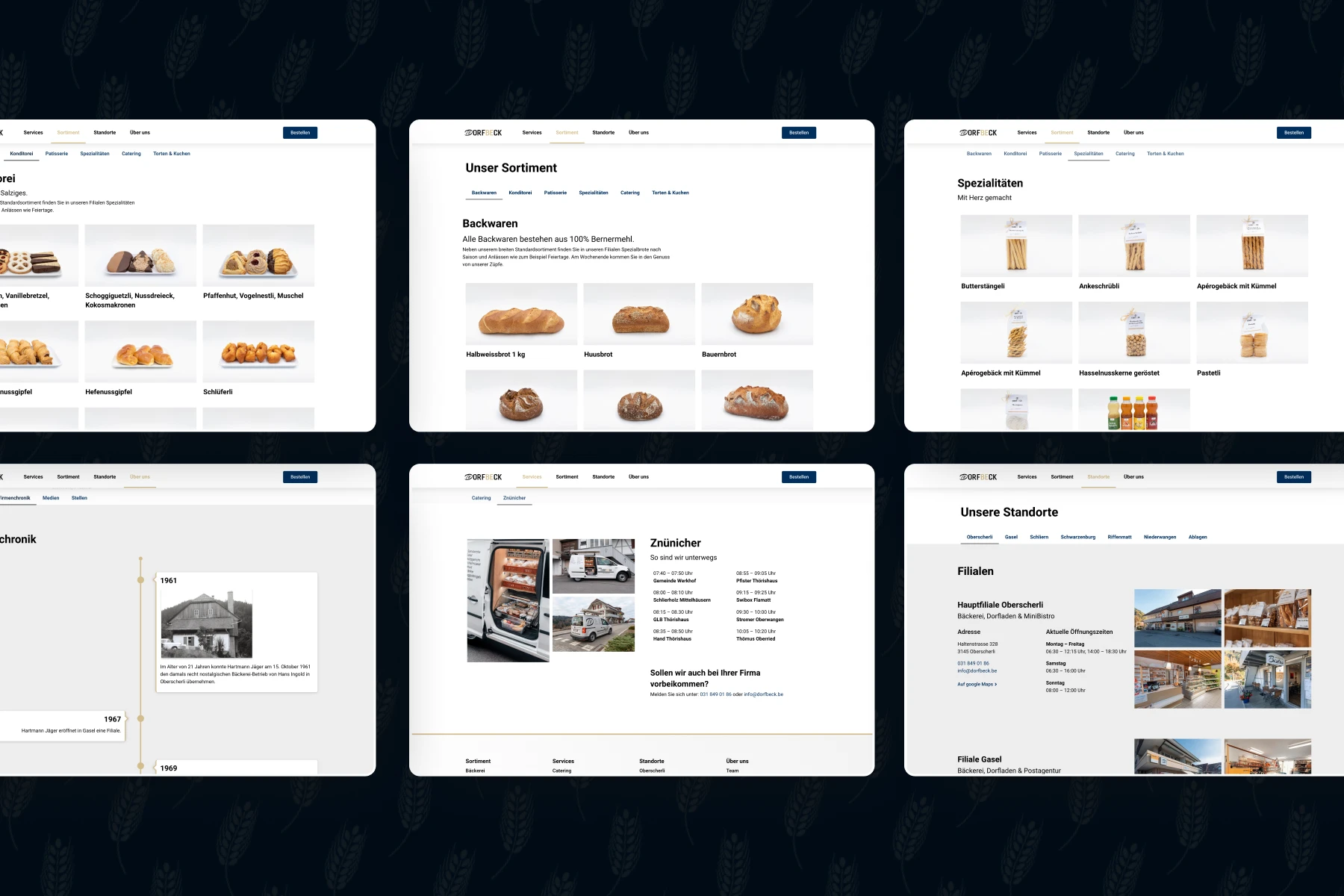Design & Umsetzung der Website. Bei der Website achteten wir auf Übersichtlichkeit und Benutzerfreundlichkeit ist. Dabei sollten natürlich die Produkte in Szene gesetzt werden und im Vordergrund stehen. Das Design ist klar, freundlich und natürlich im CI/CD der Dorfbeck AG gehalten.